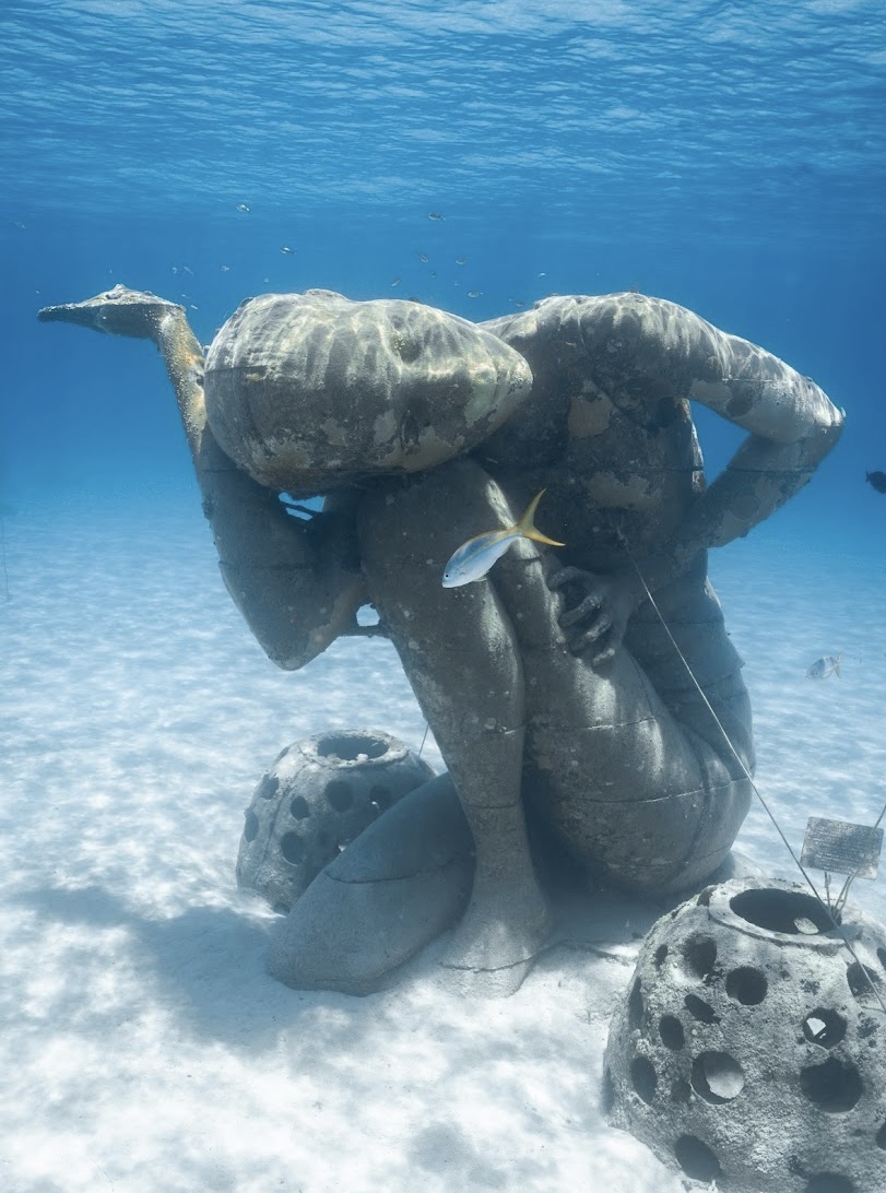 Designed specifically for snorkeling experiences, the Ocean Atlas rests on the seabed at a relatively shallow depth, making it accessible to snorkelers of all levels. The sculpture doubles as an artificial reef, encouraging coral growth and providing habitat for marine life, which makes it both an artistic landmark and an environmental effort.